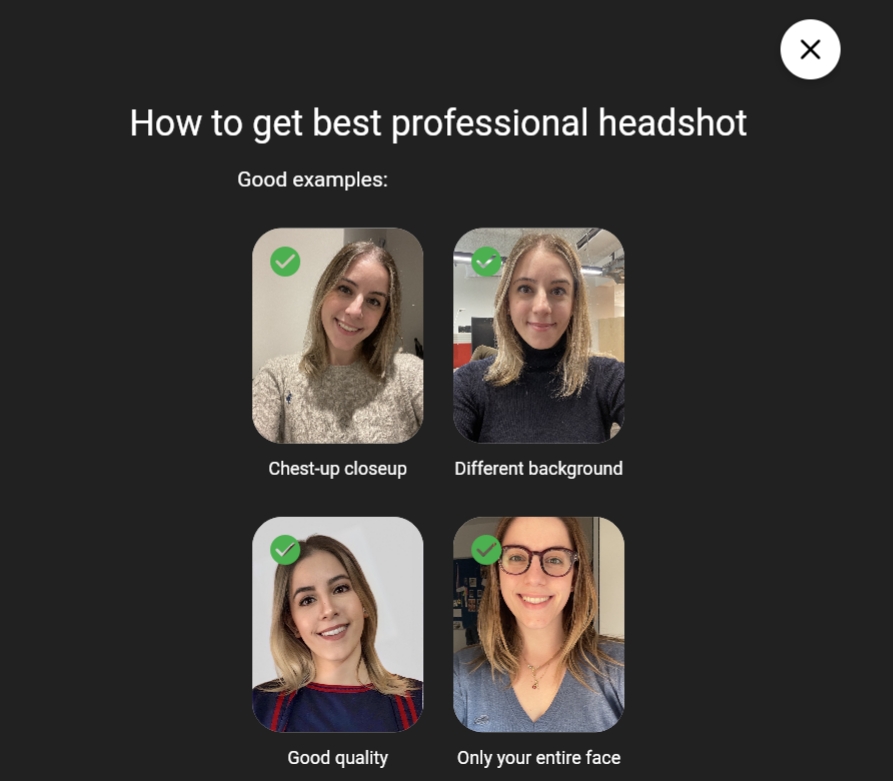 Choose from business, creative, or casual headshot styles. You can preview options on their headshot types page